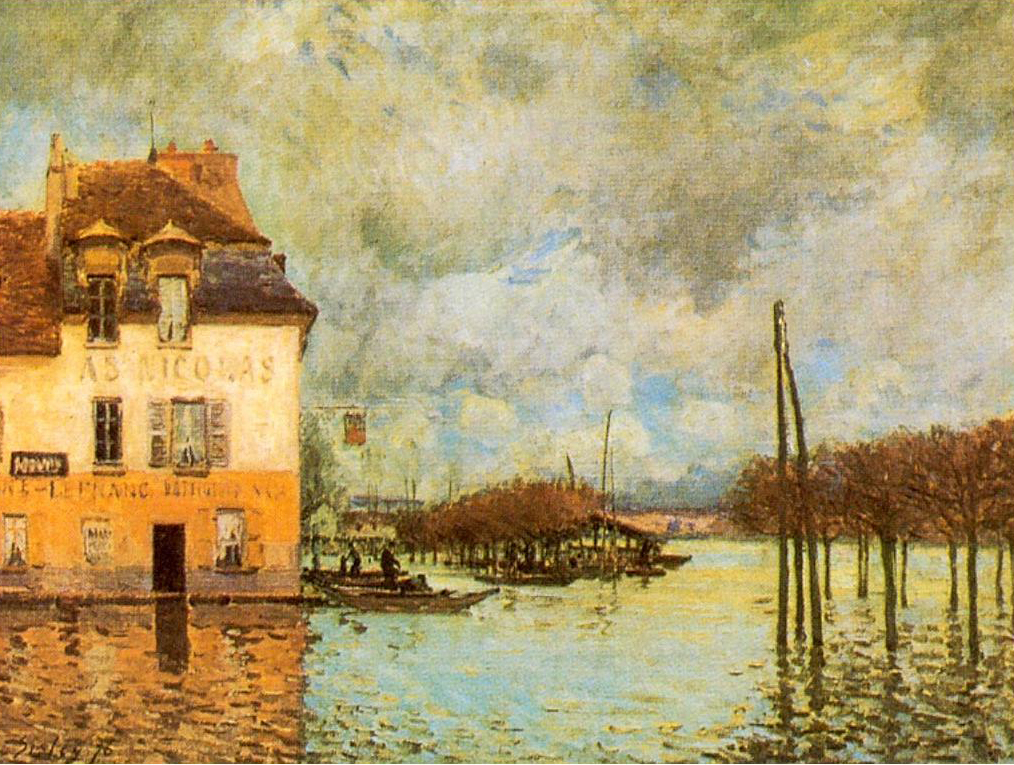But, sadly, for every “fat n’ happy” story, there is a corresponding “skinny and miserable” one. The Impressionists contribution to this Artistic and personal sadness, was Alfred Sisley, the English boy in the band. How far down was he? – Wellll, at one point he pleaded wth his fellow Impressionists to buy a painting so he could eat! Meanwhile, Monet’s daily challange was to tell his housekeeper what color the lunch plates should be. There jus’ ain’t no justice folks, is there?